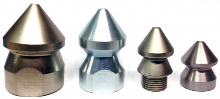 Konik Başlıklı Nozul özellikle genel temizlik kullanımları, yıkama ve evsel ve özel drenajlardaki tıkanıklıkları kırmaya uygundur. Bu standart nozullar, kirli veya geri dönüştürülmüş su kullanılması önerilir S/çelik uçlarla ve seramik uçlarla birlikte satın alınabilir. Seramik kesici uçların ömrü s/çelik olanlardan daha uzundur.
