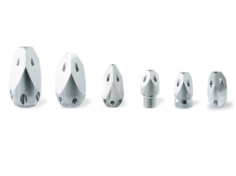 Üç kenarlı nozul, 3 yan jet ve 1 ön jet. Bu nozul, mükemmel bir yüksek hassas itme gücüne ve çökelmiş malzeme üzerinde çok güçlü bir kırılma ve kırılma hareket gücüne sahiptir. Kirli veya geri dönüştürülmüş su ile seramik eklentilerin kullanılması tavsiye edilir.