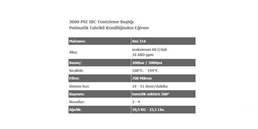 / IBC Temizleme Başlığı Pnomatik