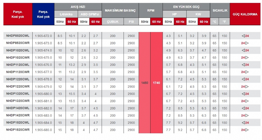 DEBİ VE BASINCA GÖRE SIRALI YÜKSEK BASINÇLI SU POMPALARI