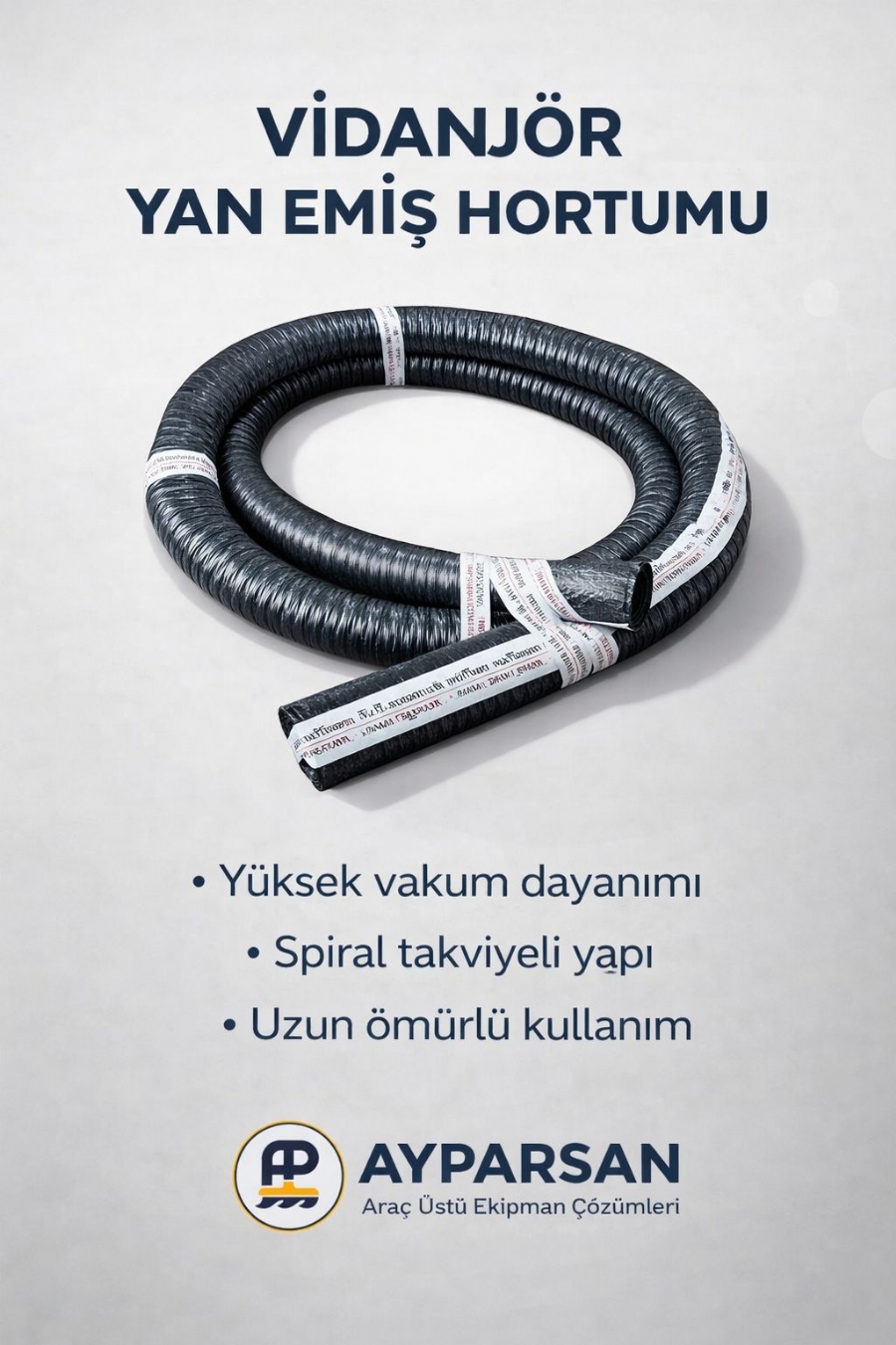 Ağır saha şartlarına uygun, yüksek emiş gücü için tasarlanmış vidanjör yan emiş hortumu.