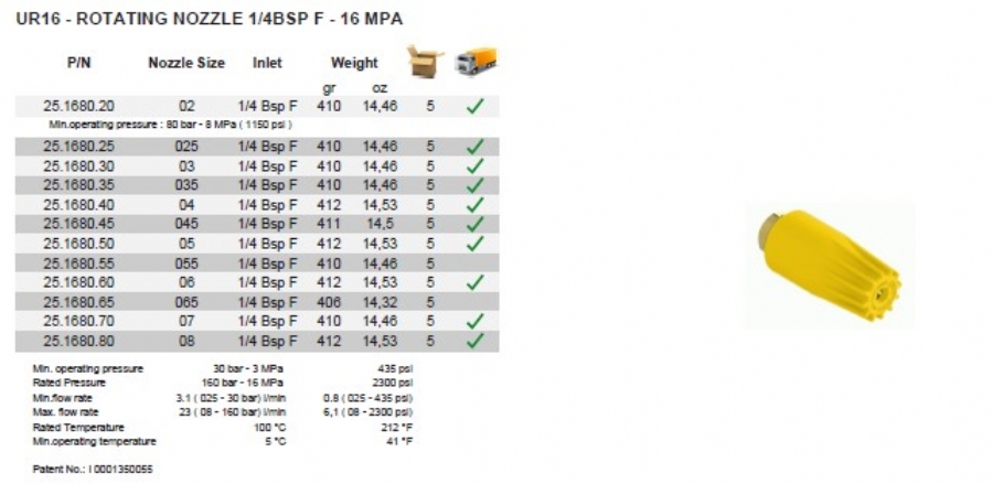 NOZUL SEÇİM TABLOSU