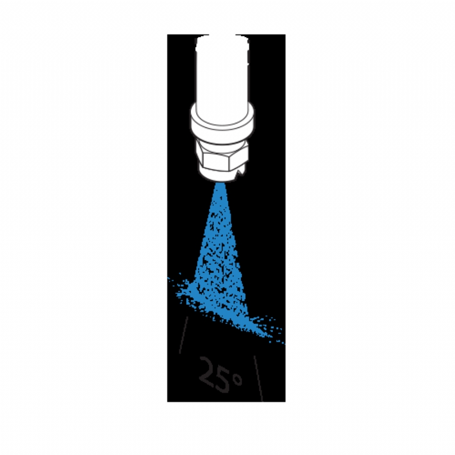 F25 püskürtme nozulları, 40 PSI basınçta 25° püskürtme açısıyla düz, yelpaze şeklinde bir püskürtme deseni oluşturur. Püskürtme yoğunluğu, desenin kenarlarına doğru azalarak, düzgün püskürtme yoğunluğunu korurken üst üste binmeye olanak tanır. Bu nozullar çeşitli yıkama ve püskürtme uygulamaları için uygundur.
